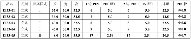 *: 以上为公å¸å¸¸ç”¨éª¨æž¶æ ·å¼ï¼Œå…¶å®ƒæ¬¾å¼æš‚未列入其ä¸ï¼Œæ¬¢è¿Žå’¨è¯¢ã€‚本公å¸å¯æŒ‰å®¢æˆ·è¦æ±‚定制å„ç§è§„æ ¼EI33高频å˜åŽ‹å™?/strong>ã€?/p>
